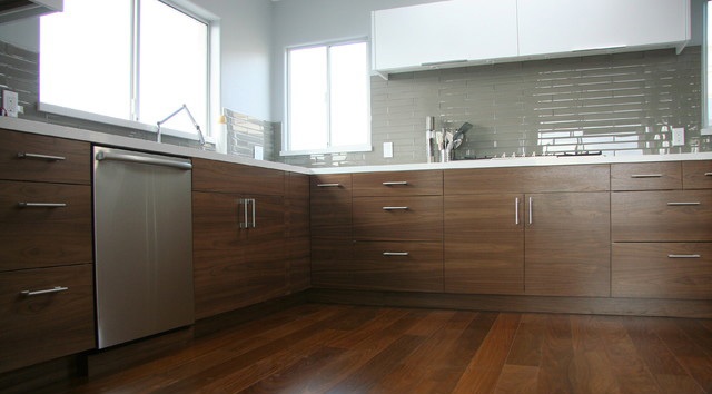 Một mẫu tủ áo, tủ bếp đựng đóng bằng gỗ veneer óc chó